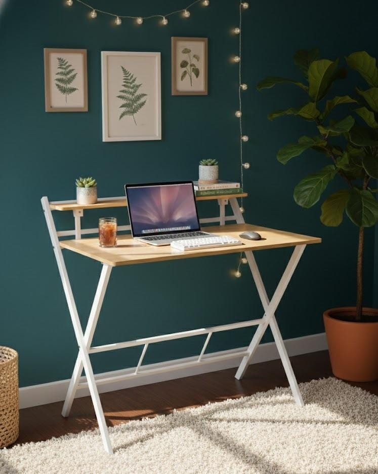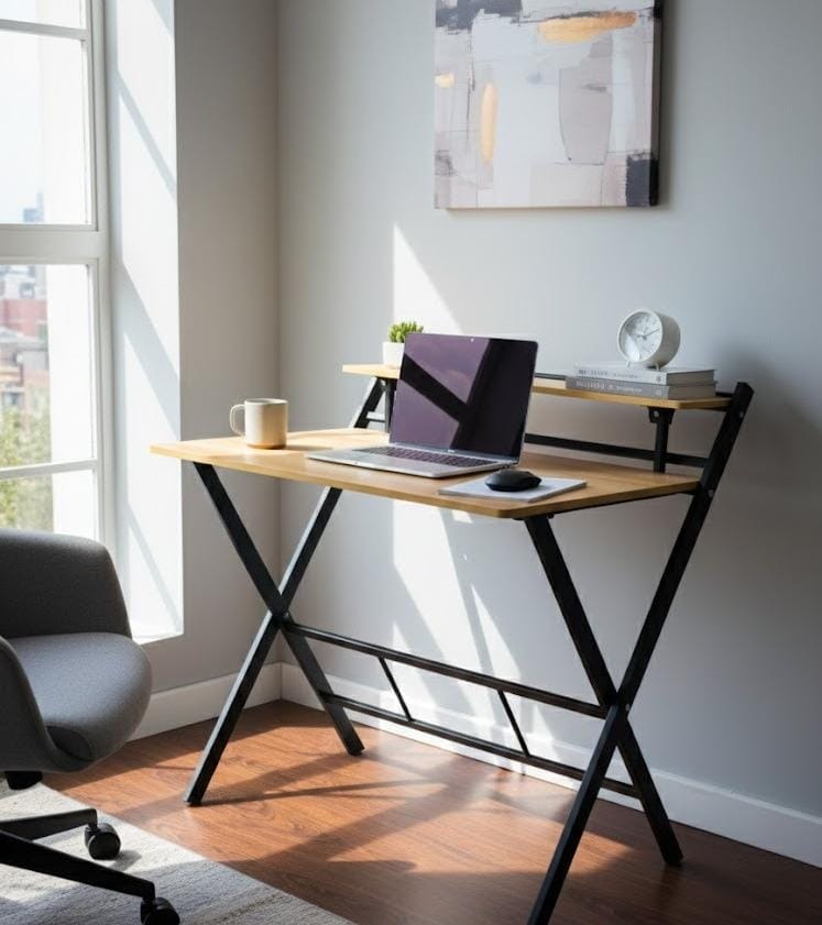 - الأبعاد : توفر الطاولة مساحة عمل واسعة، مع وجود رف صغير مما يسمح بوضع الكمبيوتر المحمول والشاشة والورق والأدوات الأخرى بسهولة.
