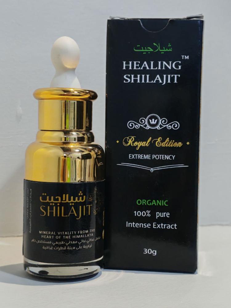 -يتم استخراج أفضل وأجود جزء من طبقة الشيلاجيت النقي الذي يحتوي على العناصر الغذائية الأكثر كثافة والأعلى جودة ممزوجًا مع مياه الأنهار الجليدية من جبال الهيمالايا بعد تجفيفه في الشمس بطريقة طبيعية آمنة بحيث يبقى محافظًا على خصائصه وتركيبته الطبيعية العضوية على أكمل وجه لصنع قطرات شيلاجيت الملكية الغنية بالمعادن الطبيعية والمغذيات الدقيقة.